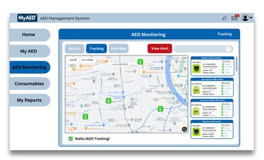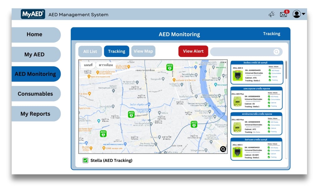 อุปกรณ์ติดตามเครื่องเออีดี ใช้สำหรับติดตามตำแหน่งของเครื่อง เมื่อถูกนำไปใช้ โดยจะแสดงตำแหน่งให้ผู้ใช้งานเห็นแบบ Real-time