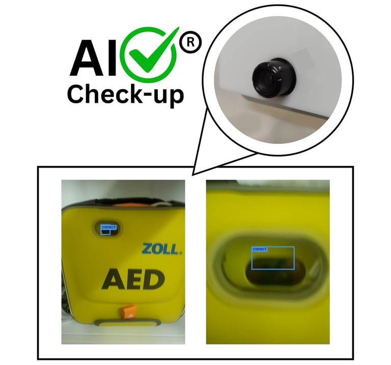 AI Check-up คือ ระบบกล้องตรวจจับความพร้อมใช้งานของเครื่องเออีดี ด้วยการประมวลผลจากการเก็บภาพเครื่องเออีดี และนำไปประมวลผลด้วย ชุดโปรแกรม Machine Learning ซึ่งจะนำผลที่ได้มาวิเคราะห์ และแปลผลส่งให้ผู้ใช้งานทราบโดยอัตโนมัติ