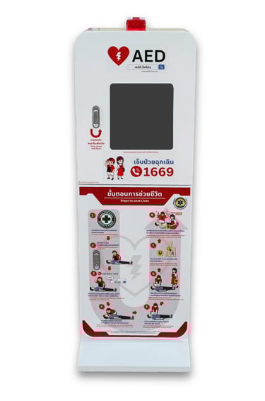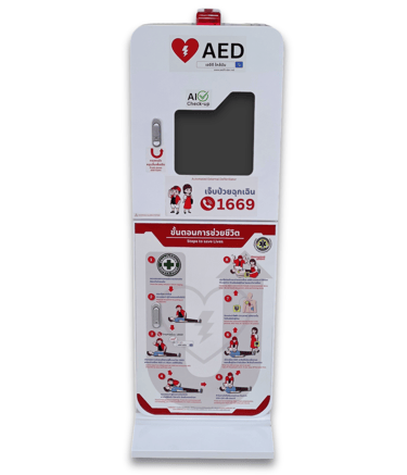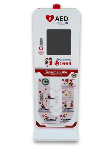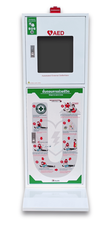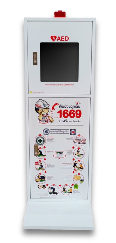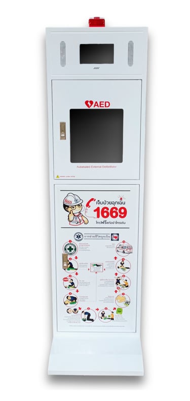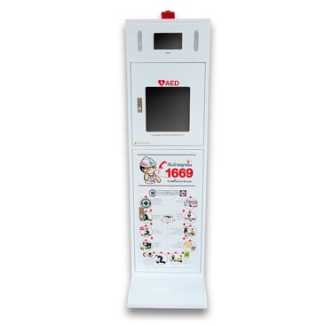 สำหรับใช้เก็บเครื่องกระตุกหัวใจแบบอัตโนมัติ หรือ AED ตู้สามารถแจ้งเตือนด้วยเสียงเมื่อมีการเปิดใช้งาน พร้อมทั้งไฟกระพริบ ทำให้ทราบได้ว่ามีเหตุฉุกเฉินเกิดขึ้น